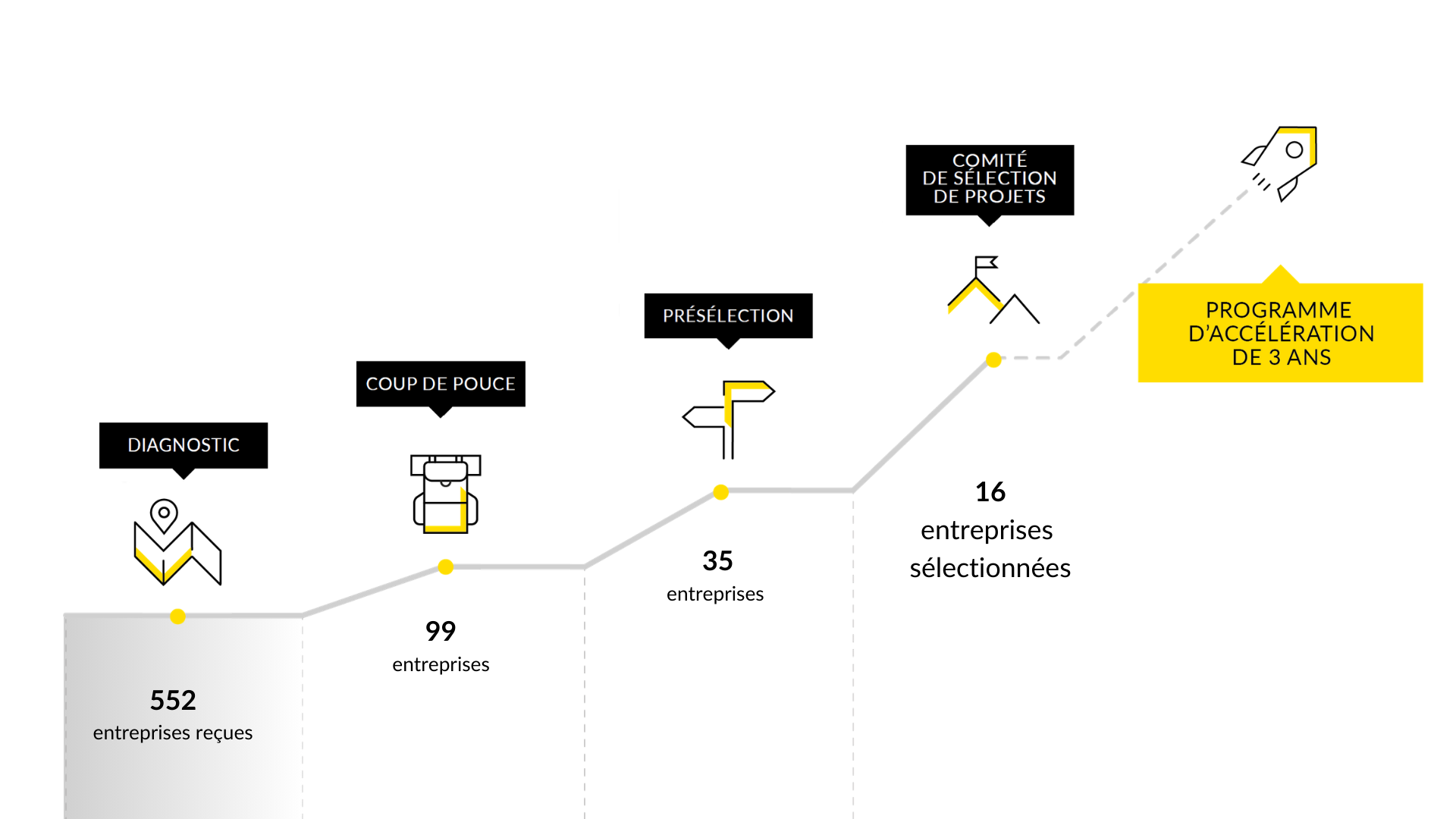 Sur sélection, ce programme de 3 ans permet d’accélérer le développement de l’entreprise en phase de croissance et d’assurer sa viabilité.